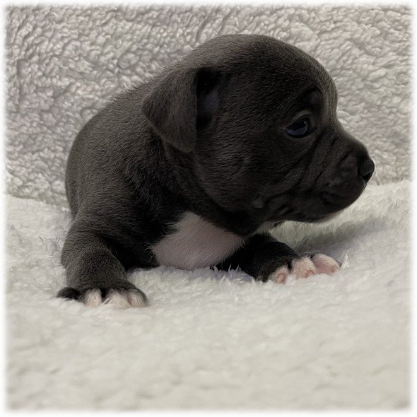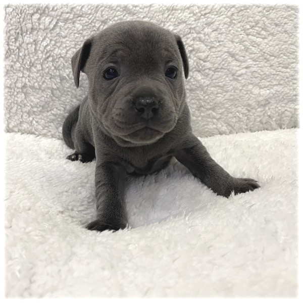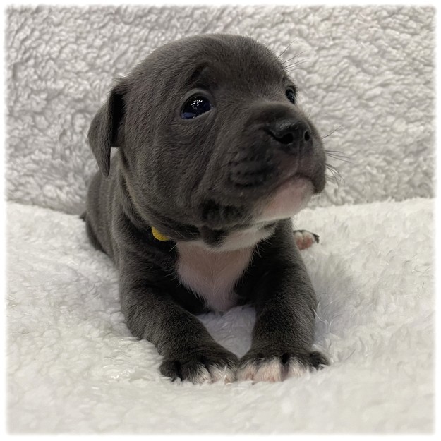 L'élevage du Domaine de Mondon est heureux de vous annoncer la naissance des bébés de Chloe, femelle Staffordshire Bull Terrier de couleur bleu de notre élevage.