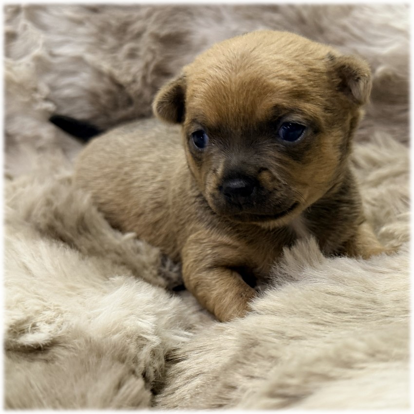 L'élevage du Domaine de Mondon vous propose ce chiot, adorable petite femelle Chihuahua de couleur sable à poils court.