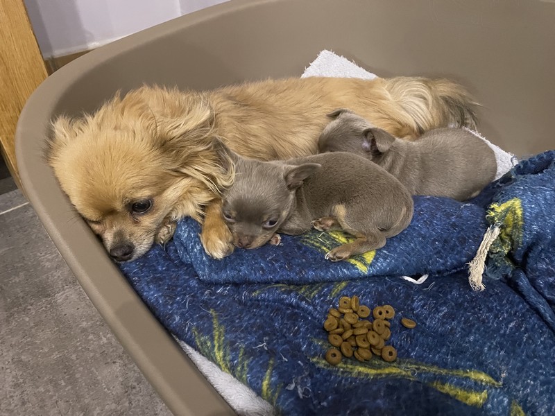 nés de son union avec Léon notre papa reproducteur Chihuahua de couleur bleu lavande.
