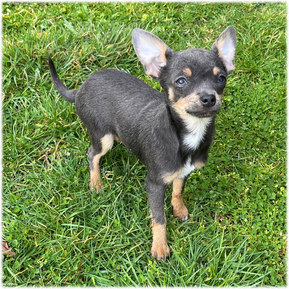 Ce petit mâle Chihuahua de couleur Bleu (Léon) est un petit mâle très très affectueux et très calin. Un amour qui vous suivra au bout du monde...