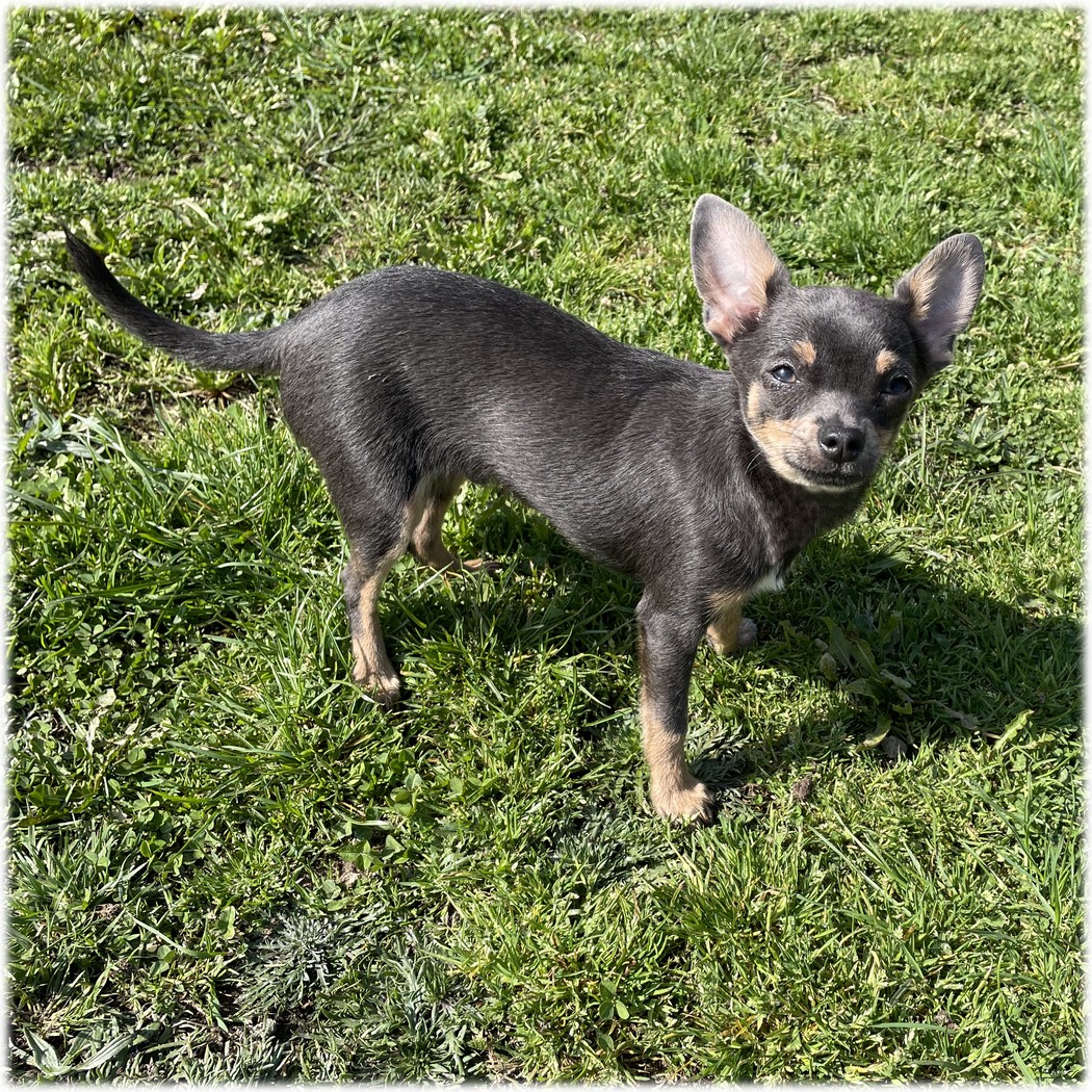 Cette petite femelle Chihuahua de couleur Bleu (Téa) est une petite fille très caline et très affectueuse. Elle adore être en extérieur.