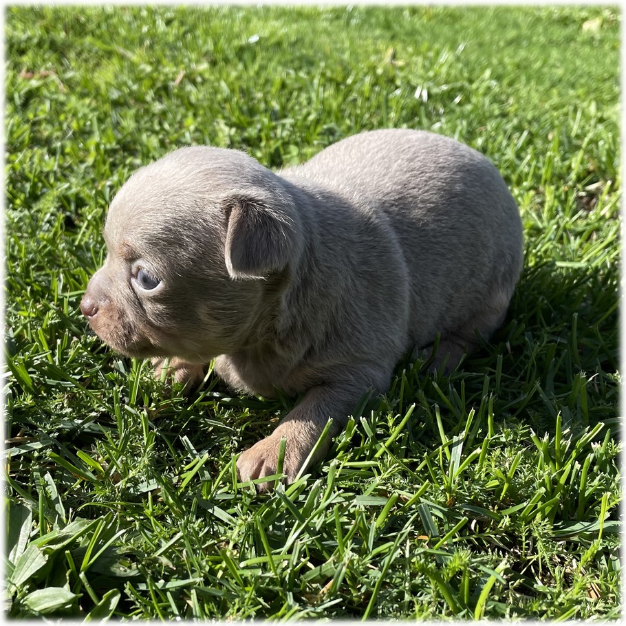 nés de son union avec Léon notre papa reproducteur Chihuahua de couleur Bleu Lavande qui à donné sa couleur à la majorité des bébés.