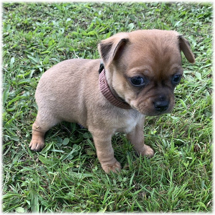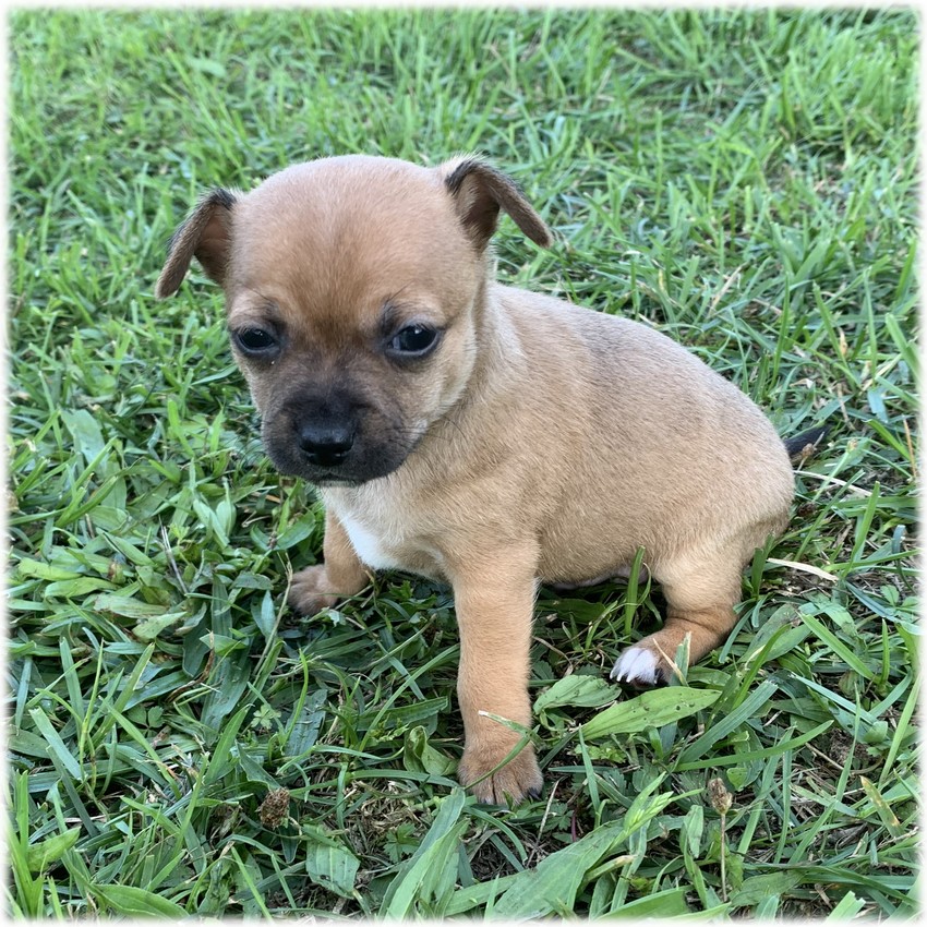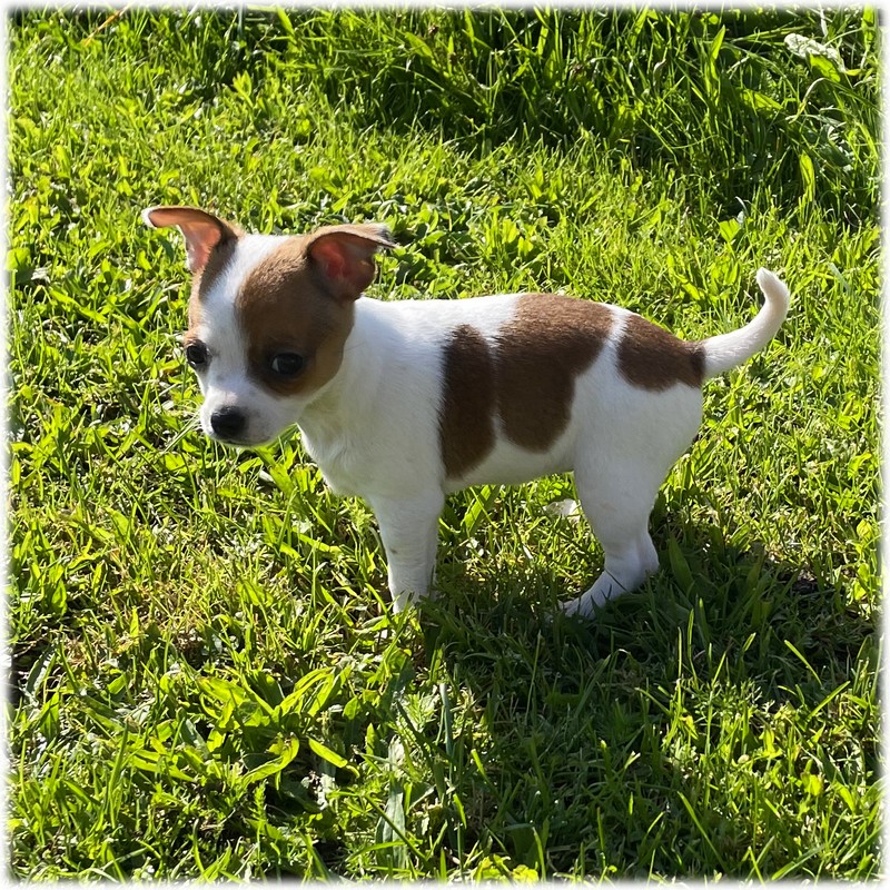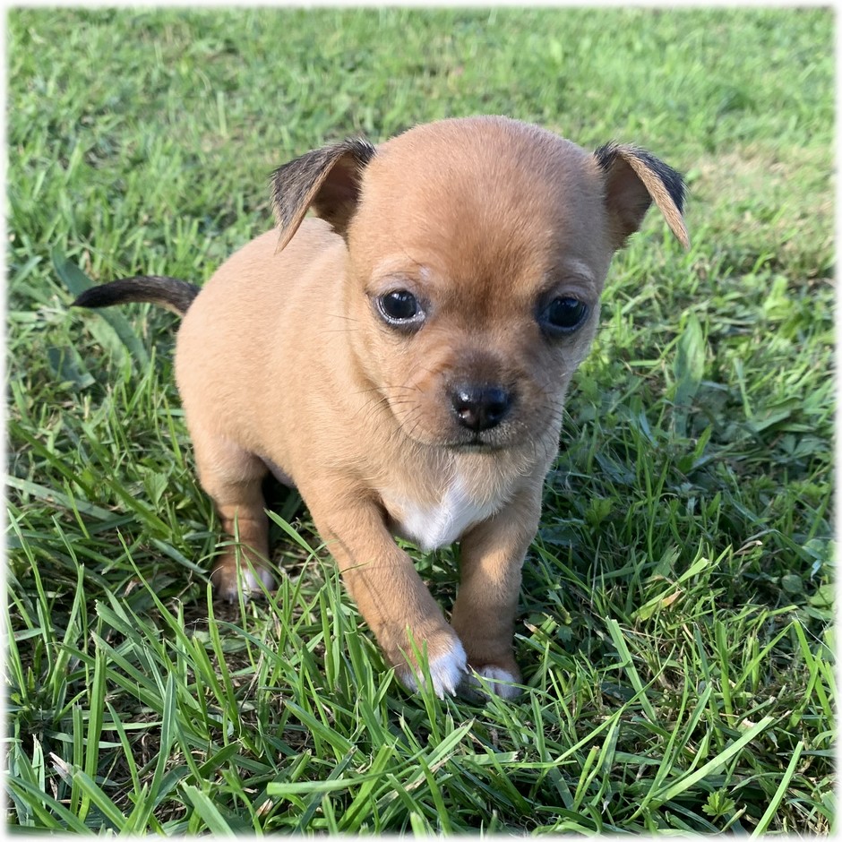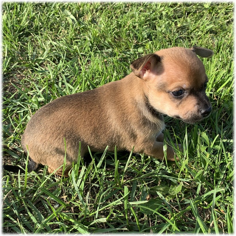 Les bébés sont plus typés Chihuahua que Pinscher Nain, papa à comme souvent donné sa morphologie aux bébés tandis que maman leur à donné sa couleur Feu.