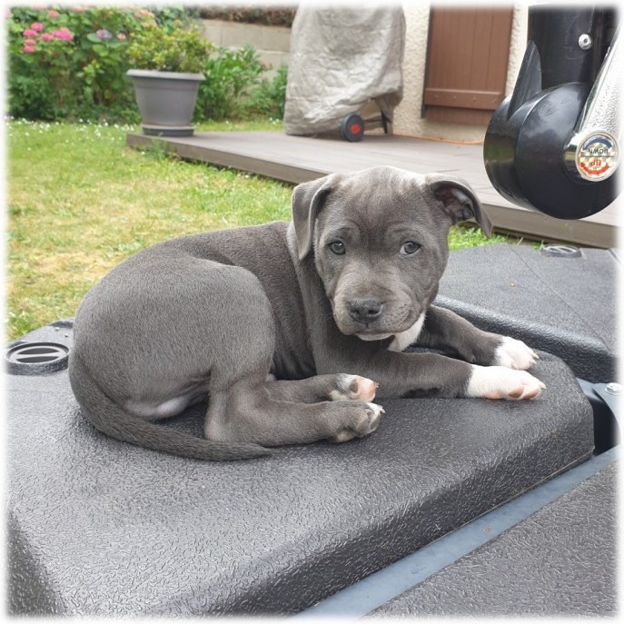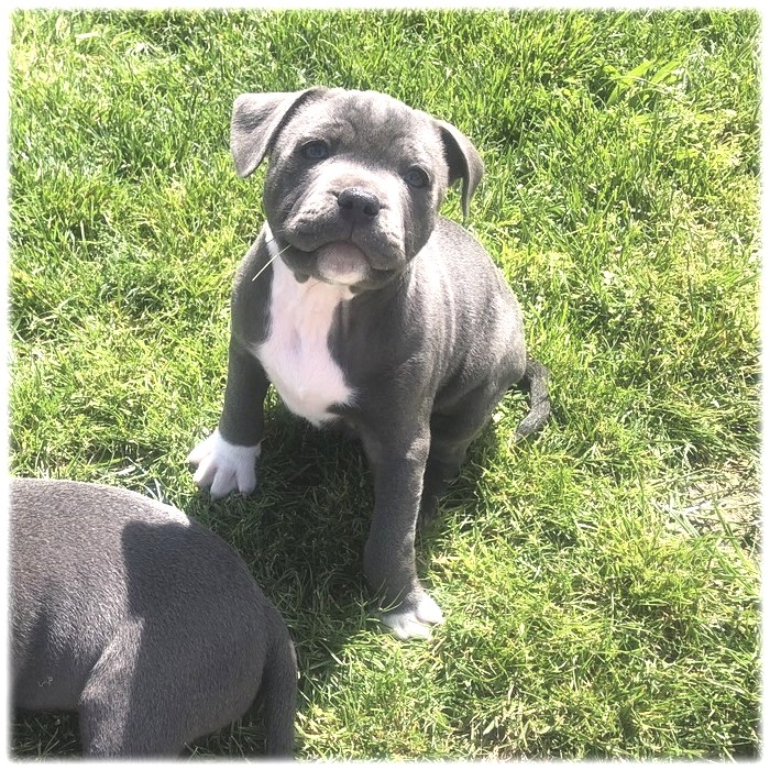 L'élevage du Domaine de Mondon est heureux de vous apprendre la naissance des bébés de Osiris femelle Staffordshire Bull Terrier (Staffy LOF) de couleur Bleue, fille de notre première maman Nicky.