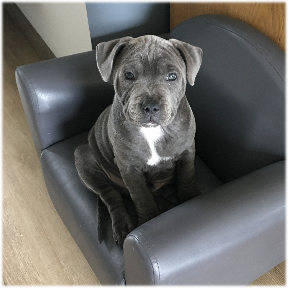 Elle vient d'avoir 7 petits Staffy LOF le 03-04-2020, tous de couleur Bleue... à découvrir ci-dessous.