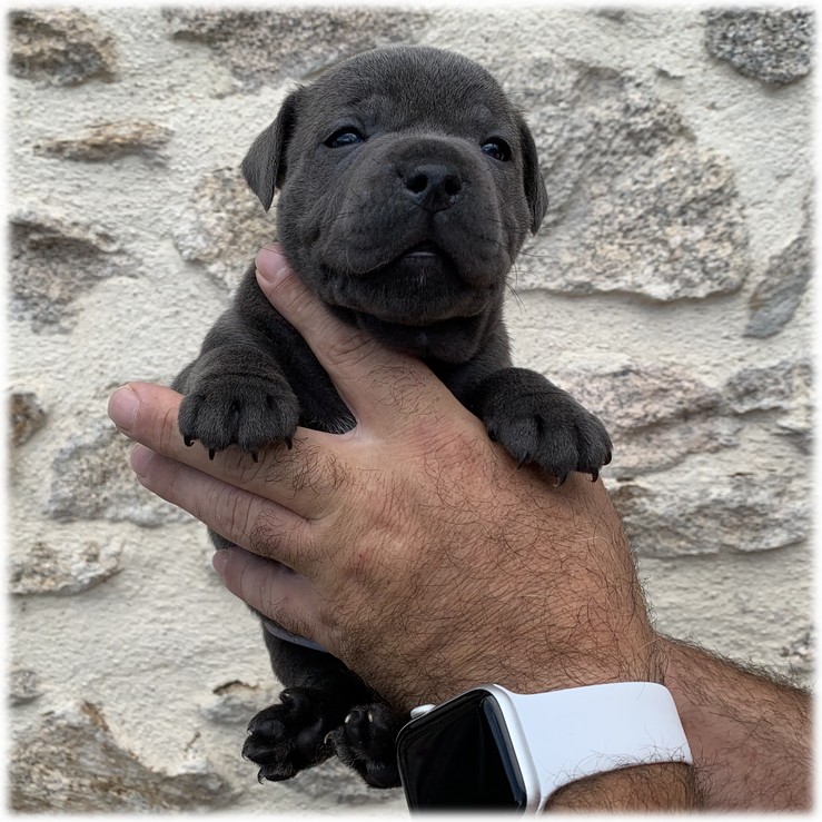 L'élevage du Domaine de Mondon est heureux de vous apprendre la naissance des bébés d'Osiris, femelle Staffordshire Bull Terrier (Staffy) de couleur Bleue, fille de notre première maman Nicky.