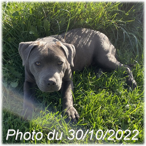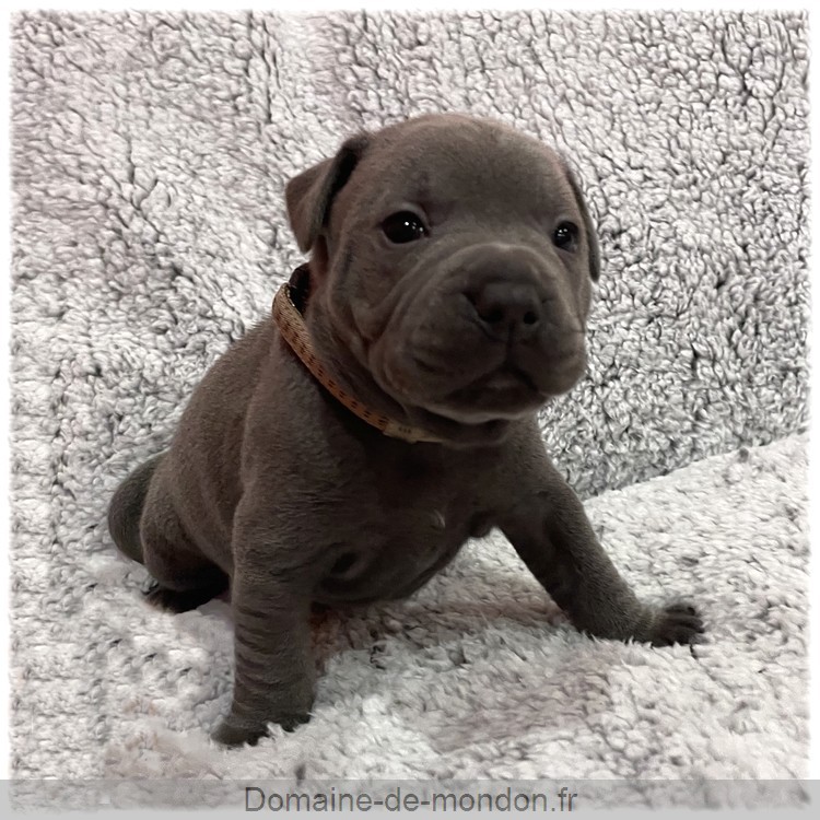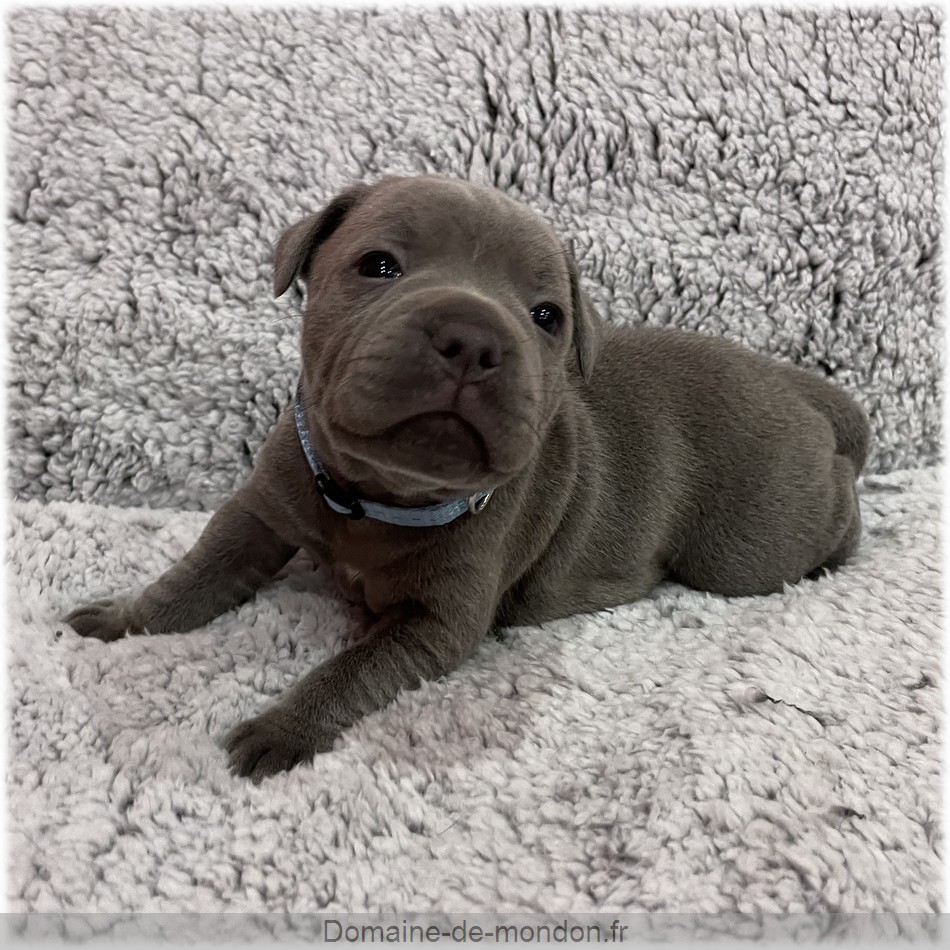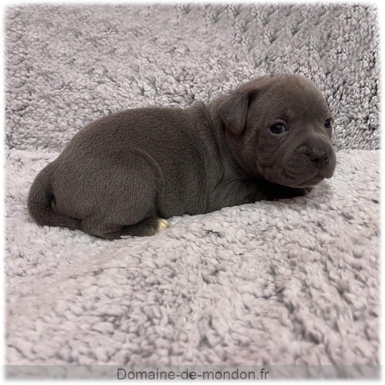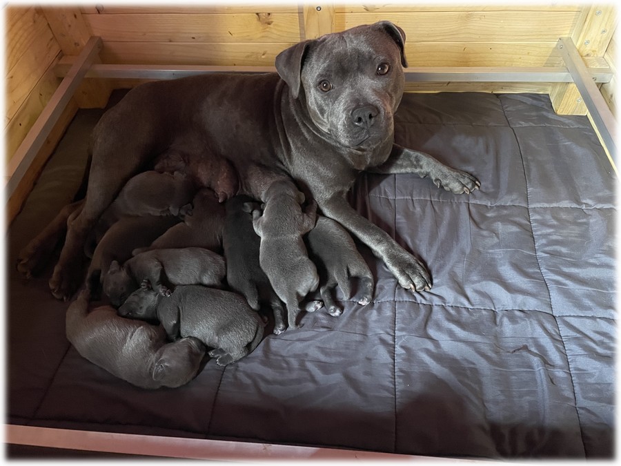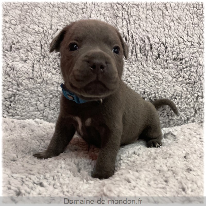 L'élevage du Domaine de Mondon est heureux de vous annoncer la naissance des chiots staffy bleus LOF de Athor, femelle Staffordshire Bull Terrier de couleur bleu.