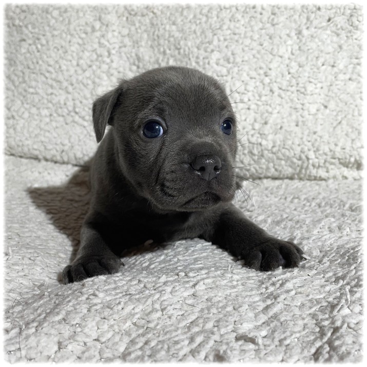 L'élevage du Domaine de Mondon est heureux de vous annoncer la naissance des chiots staffy bleus LOF de Isis, femelle Staffordshire Bull Terrier de couleur bleu.